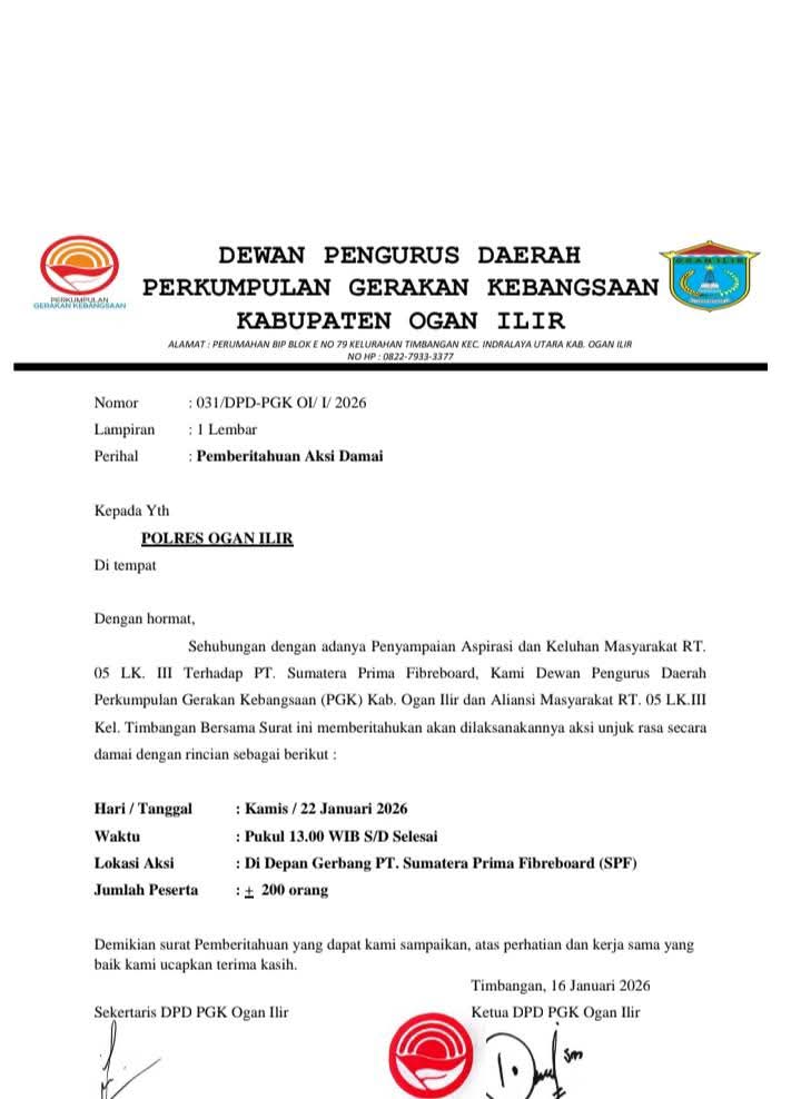 Hingga berita ini ditayangkan, pihak Polres Ogan Ilir belum memberikan keterangan resmi terkait tindak lanjut atas permohonan tersebut.