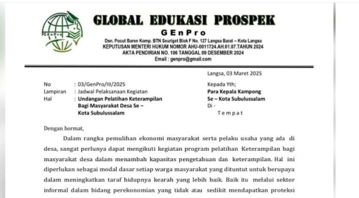 Lebih mengejutkan lagi, penyelenggara pelatihan, Global Edukasi Prospek (GenPro), baru berdiri pada tahun 2024. Surat undangan bernomor 003/GenPro/III/2025 tertanggal 3 Maret 2025, menunjukkan biaya pelatihan yang sangat tinggi: Rp 30 juta per desa, dengan rincian Rp 15 juta untuk pelatihan pertukangan dan Rp 15 juta untuk pelatihan kelistrikan. Total 164 peserta dari 82 desa akan mengikuti pelatihan ini.