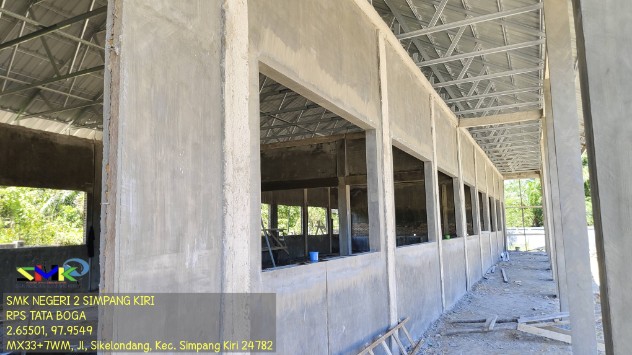 Dijelaskannya ” Alhamdulillah tahun ini sekolah kita mendapat pembangunan penambahan ruang sarana Praktik untuk siswa. Pembangunannya sudah hampir tuntas, mudah mudahan pembangunan ruang praktek semuanya lancar hingga dapat bermanfaat buat siswa-siswi SMK Negeri 2 Simpang Kiri.