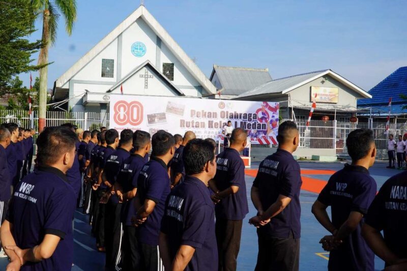 Medan – Dalam rangka memeriahkan Hari Ulang Tahun ke-80 Kemerdekaan Republik Indonesia, Rumah Tahanan Negara (Rutan) Kelas I Medan menggelar kegiatan pembukaan Pekan Olahraga dan Aneka Perlombaan yang diikuti oleh seluruh pegawai Rutan, Sabtu (9/8).