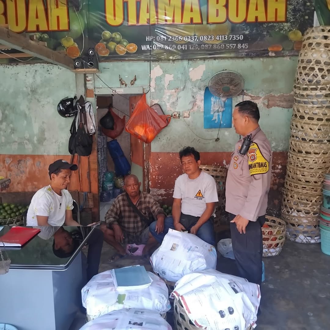 Dalam pelaksanaannya, Aiptu Gede Wijaya Kusuma menyambangi dan berdialog langsung dengan para pedagang, pembeli, serta warga sekitar yang tengah beraktivitas.