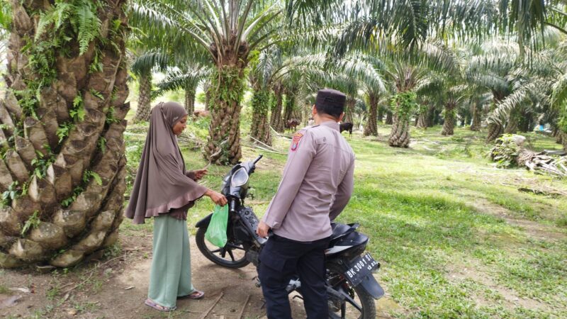 Batu Bara Personil Satuan Binmas (Binmas) Polres Batu Bara melaksanakan kegiatan sambang dan berbagi nasi bungkus kepada warga penggembala sapi di Desa Mangkai Baru, Kecamatan Lima Puluh, Kabupaten Batu Bara pada Selasa, 3 Juni 2025.