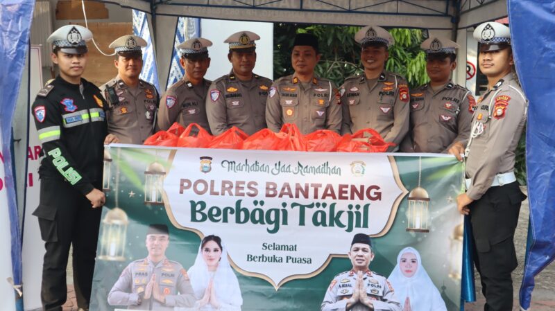 BANTAENG, Teropong Barat.com, – Dalam rangka meningkatkan kepedulian sosial serta mempererat hubungan dengan masyarakat di bulan suci Ramadan 1447 Hijriah, Jajaran Sat Lantas Polres Bantaeng Dipimpin AKP Andi M Takbir Akbar Amnur didampingi Kanit Gakkum IPDA Al Hoesni Mubarak, Kanit Patroli AIPTU Muh Ali serta personel Sat Lantas dan Pengurus Bhayangkari Cabang Bantaeng menggelar kegiatan pembagian takjil kepada para pengguna jalan dan warga sekitar. Jum’at, (20/2/2026).