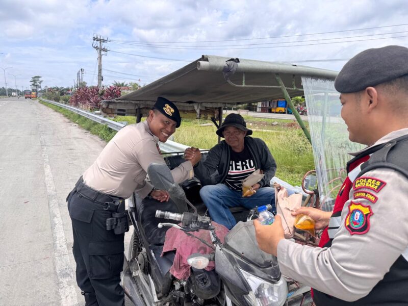 Batu Bara – Personel Satuan Samapta Polres Batu Bara melaksanakan kegiatan Jumat Barokah dengan membagikan makanan kepada masyarakat kurang mampu di sepanjang Jalinsum Lima Puluh dan Indrapura, Jumat (12/09/2025).