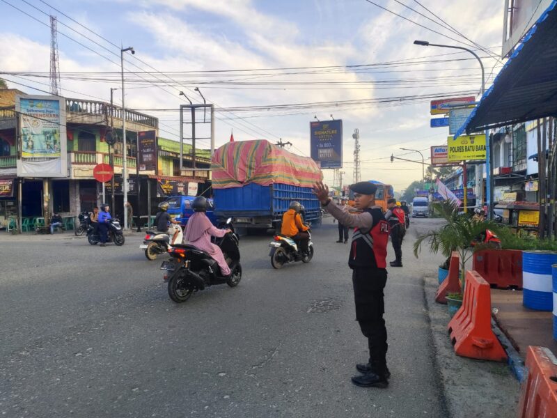 Kegiatan strong point pagi ini difokuskan di tiga titik rawan, yaitu Simpang Empat Pos Lantas Lima Puluh, Simpang Ring Road, dan Simpang Perumnas.