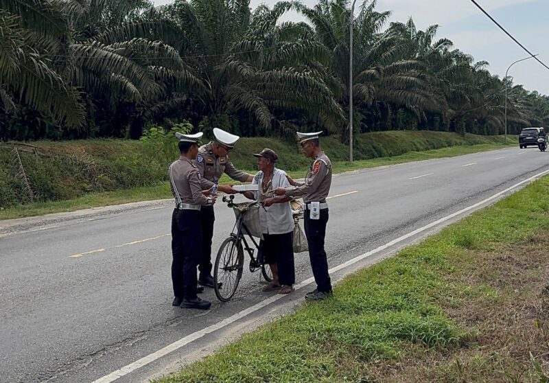 Batu Bara | Satuan Lalu Lantas (Satlantas) Polres Batu Bara menunjukkan kepedulian sosialnya dengan menggelar kegiatan berbagi nasi kotak kepada Orang Dengan Gangguan Jiwa (ODGJ), pekerja jalanan, dan tukang becak.