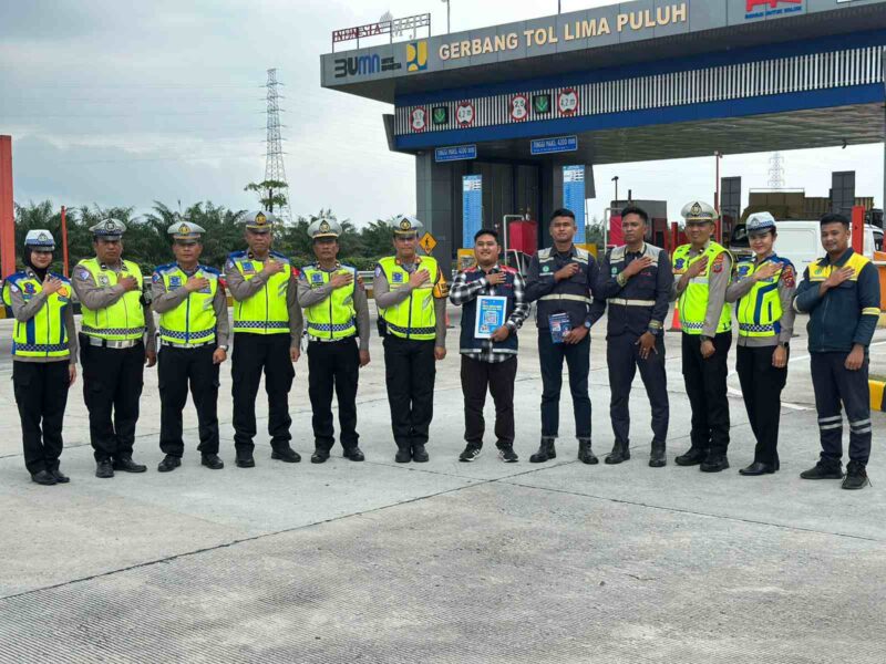 Batu Bara – Dalam rangka meningkatkan upaya pencegahan kecelakaan lalu lintas dan menyosialisasikan Operasi Ketupat Toba 2026, Satuan Lalu Lintas (Satlantas) Polres Batu Bara menggelar rapat koordinasi dengan pihak pengelola jalan tol Hutama Karya pada Sabtu (14/03/2026) sekitar pukul 11.00 WIB di Pintu Gerbang Tol Lima Puluh. Kegiatan ini dihadiri langsung oleh Kepala Satlantas Polres Batu Bara AKP Simon E. Simatupang, S.H., M.H., beserta jajaran Kanit dan personel Satlantas Polres Batu Bara.
