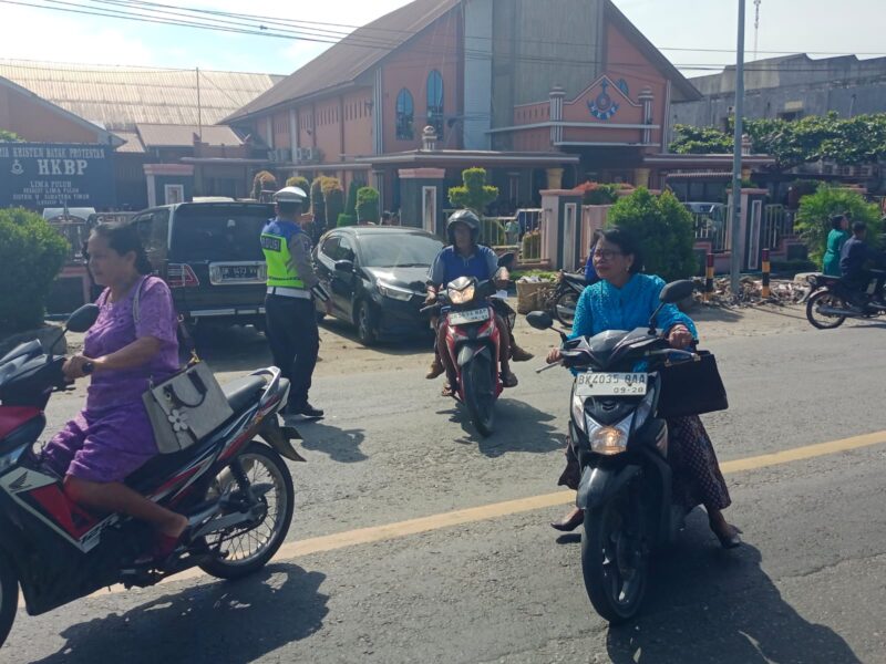 Satlantas Polres Batu Bara Perkuat Keamanan dan Kelancaran Lalu Lintas di Gereja Selama Ibadah Minggu