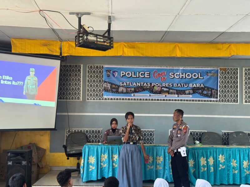 Batu Bara | Personel Satuan Lalu Lintas (Satlantas) Polres Batu Bara melaksanakan kegiatan “Police Goes to School” di SMA Negeri 1 Air Putih, Kabupaten Batu Bara, pada Rabu, 28 Mei 2025.