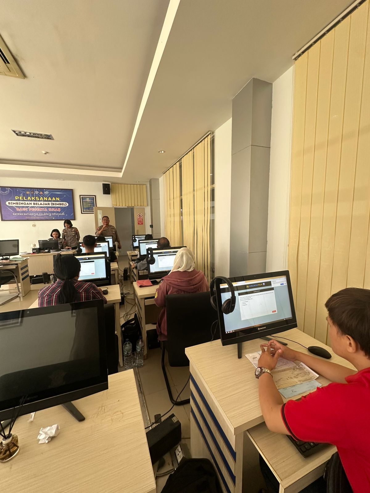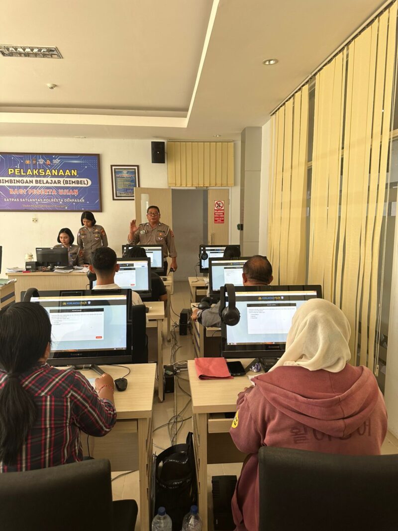 Kegiatan tersebut terlihat saat para pemohon mengikuti bimbingan sebelum pelaksanaan ujian teori. Petugas dengan sabar memberikan arahan terkait tata cara menjawab soal, sekaligus membantu peserta memahami materi yang diujikan agar lebih siap dan percaya diri.
