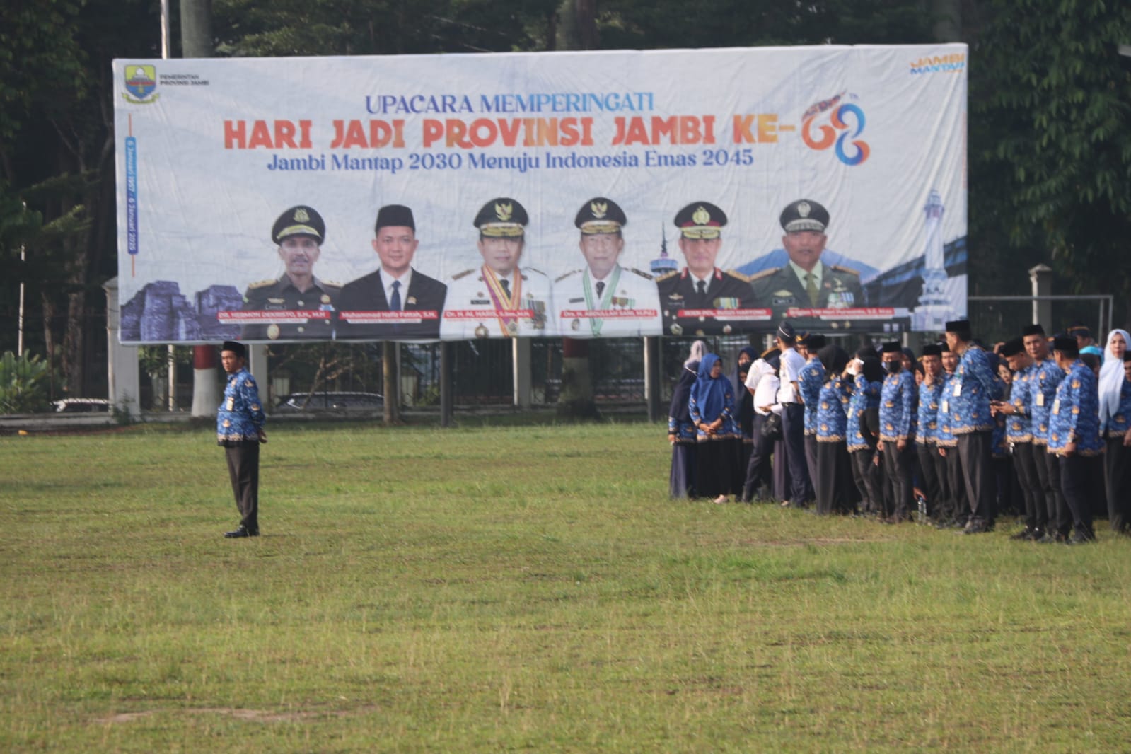 Dalam Apel tersebut, Sekda Sudirman juga membacakan sambutan tertulis Gubernur Jambi Al Haris yang mengatakan bahwa Nasionalisme atau cinta tanah air dan kedisiplinan merupakan faktor pendorong bagi semua untuk mengemban tanggung jawab serta melaksanakan tugas dan fungsi dengan sebaik-baiknya, tentunya berdasarkan pada aturan atau regulasi yang berlaku. “Dengan demikian, akan memiliki paradigma bahwa melaksanakan tugas-tugas dalam profesi kita sebagai aparatur sipil negara tidak hanya dalam upaya untuk memenuhi kebutuhan ekonomi, tetapi juga merupakan bagian dari kontribusi dan pengabdian kita untuk kemajuan bangsa dan negara serta menghasilkan manfaat besar bagi Masyarakat,” ucap Gubernur Al Haris.