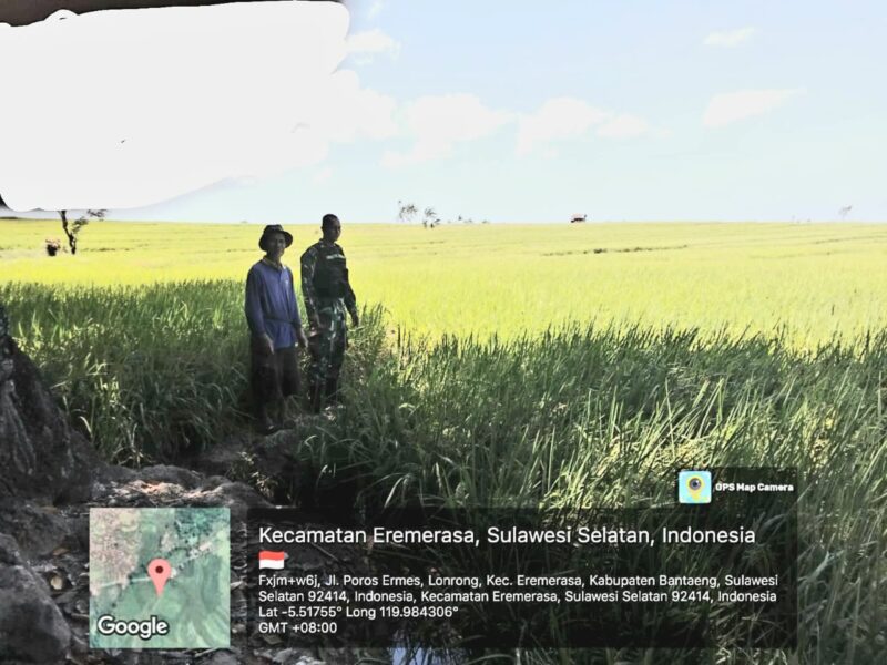 BANTAENG, Teropong Barat.com, – Peran TNI dalam mendukung ketahanan pangan kembali ditunjukkan Babinsa Desa Lonrong, Koramil 1410-02/Eremerasa, Serda Zaenal Abidin, ia turun langsung ke sawah untuk melakukan pemantauan sekaligus pendampingan kepada salah satu petani binaannya, Dg Suba, di Dusun Cambayya, Desa Lonrong, Kecamatan Eremerasa, Kabupaten Bantaeng. Sabtu (27/9/2025)