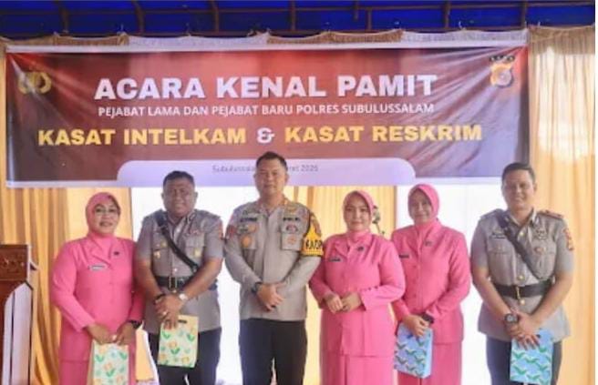 Subulussalam, teropongbarat.co. Pagi itu, barisan rapi personel memenuhi Lapangan Tatag Trawang Tungga. Di bawah langit yang teduh, Kepolisian Resor Subulussalam menggelar upacara serah terima jabatan (sertijab) untuk dua posisi strategis: Kepala Satuan Intelkam dan Kepala Satuan Reserse Kriminal, Jumat, 27 Maret 2026.