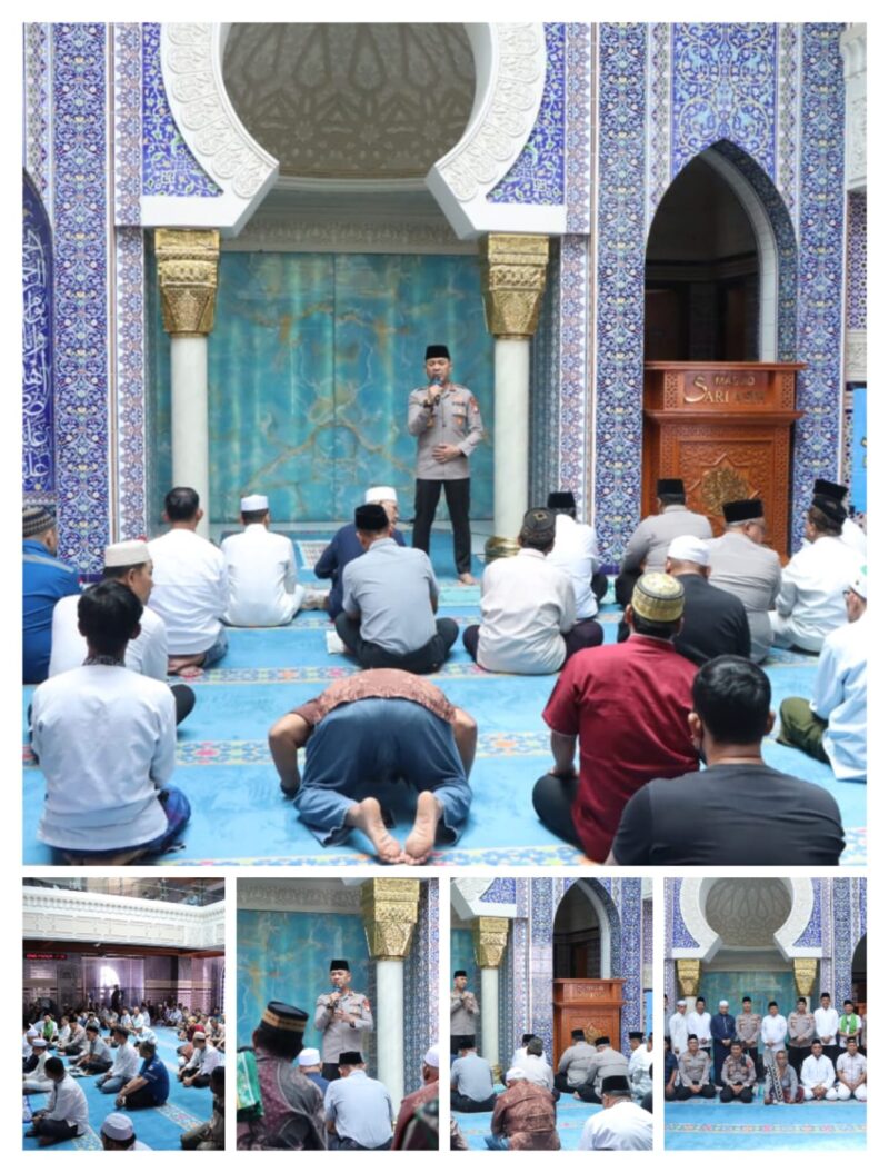 Usai pelaksanaan Sholat Jumat berjamaah yang dipimpin Ustaz H. Ni’matullah, Lc., M.A., kegiatan dilanjutkan dengan sesi “Jumat Curhat”, di mana Kapolres menyampaikan pesan kamtibmas sekaligus menyerap aspirasi masyarakat secara langsung. Dalam sambutannya, Kapolres mengapresiasi sambutan hangat dari pengurus DKM dan masyarakat. “Ini merupakan program Jumat Keliling, di mana kami turun langsung ke lapangan untuk mendengarkan masukan masyarakat sekaligus memberikan imbauan kamtibmas. Kami ingin lebih dekat dan hadir di tengah warga,” ujar Kombes Jauhari.