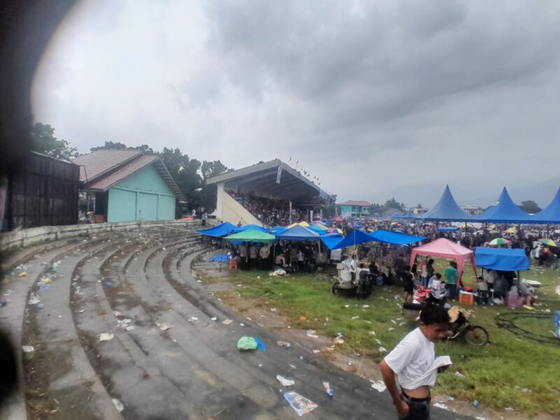 Kutacane, teropong Barat Com.Pada kempanye akbar rasa November 23, 2024Kondisi Stadion Haji Syahadat Kutacane sernu warga gayo lues dan warga Aceh Tebggara baik simpatisan no.1 dan 2 hingga simpatisan 3 maupun warga karo perbatasan lawe pakam terlihat massa simpatisan tampak hadir, hingga kondisi tribun dan lapangan sepak bola hampir semua terisi kecuali teribun hilir terbuka tidak terisi.