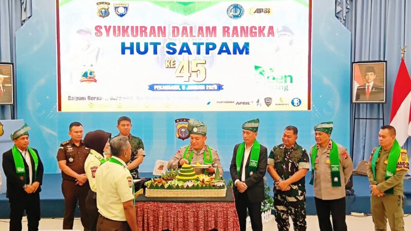 Pekanbaru – Kapolda Riau menghadiri syukuran Hari Ulang Tahun (HUT) ke-45 Satuan Pengamanan (Satpam) Indonesia di lantai 5 Kapolda Riau, Senin (5/1/2026).