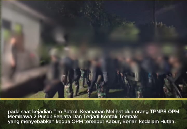 Pada saat kejadian, Tim Patroli Keamanan Koops TNI Papua melihat ada dua orang TPNPB OPM, membawa 2 pucuk Senjata Api dan terjadi Kontak Tembak, yang menyebabkan kedua OPM tersebut Kabur, Berlari kearah Hutan.Selanjutnya Tim Patroli keamanan melakukan pengejaran, dan menemukan salah satu OPM tewas di tempat atas nama Hurbianus Mirip.