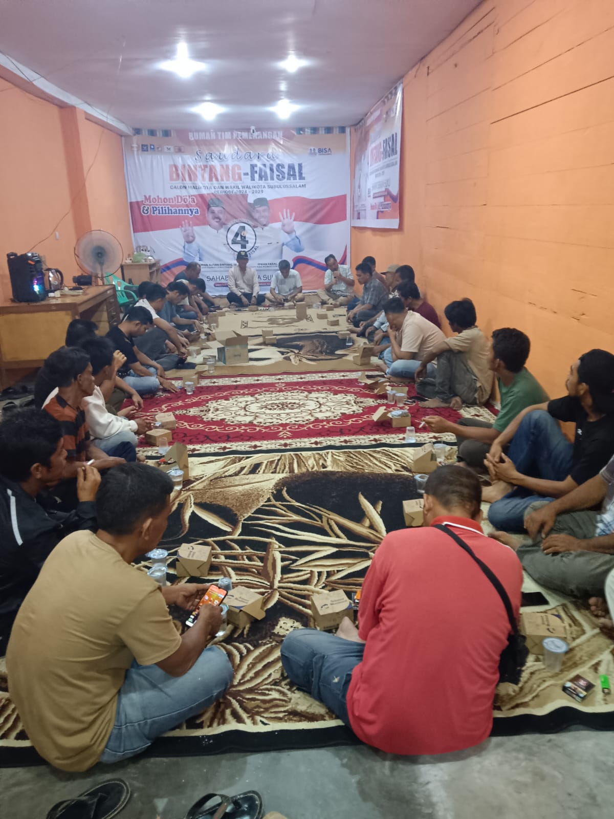 Menjadi pembahasan terpenting saat rapat relawan ” Harus mampu meraih tim yang sempat berada ke tim sebelah, kembali ke Jati diri dan tetap bersama-sama untuk bersatu padu, memenangkan paslon Bintang-Faisal nomor urut empat.
