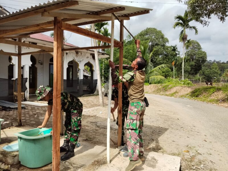 TeropongBarat – Pembangunan fasilitas MCK (mandi, cuci, kakus) menjadi salah satu sasaran fisik utama dalam program TNI Manunggal Membangun Desa (TMMD) ke-128 Kodim 0110/Aceh Barat Daya (Abdya). Program ini bertujuan meningkatkan sanitasi, kesehatan, serta kualitas hidup masyarakat pedesaan. Amatan wartawan, Jumat (24/4/2026) salah satu pembangunan MCK dilakukan di Musala Al-Mukarramah, Desa Gunung Cut, Kecamatan Tangan-Tangan. Kegiatan tersebut dilaksanakan secara gotong royong antara Satgas TMMD bersama masyarakat setempat, mulai dari penyediaan material hingga tahap penyelesaian bangunan.