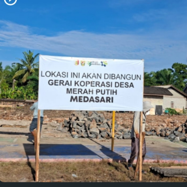 Berdasarkan pantauan di lokasi, papan informasi tersebut hanya bertuliskan “Lokasi Ini Akan Dibangun Gerai Koperasi Desa Merah Putih Medasari” tanpa rincian teknis sebagaimana lazimnya proyek fisik yang menggunakan anggaran negara atau dana desa.