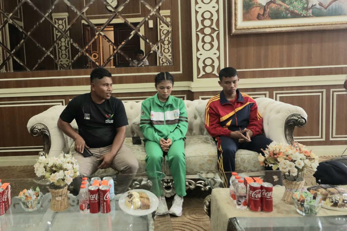 Teropong Barat co/Ketua Pertina Pakpak Bharat Selloh Cibro, S.Sos bersama para atlit tinju amatir yang berada di bawah naungan Pertina melakukan audiensi ke Pjs. Bupati Dr. Naslindo Sirait diruang kerjanya, Sabtu (05/10/2024).