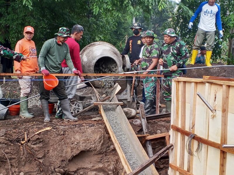 Wujud Nyata TNI Untuk Rakyat, Kasdim 1410/Bantaeng Pimpin Pengecoran Jembatan Libboa