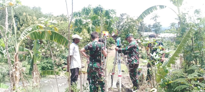 Zidam XlV/Hasanuddin Melaksanakan Pengukuran Titik Pangkal Pembangunan Jembatan Gantung Tahap lll di Wilayah Kodim 1410/Bantaeng